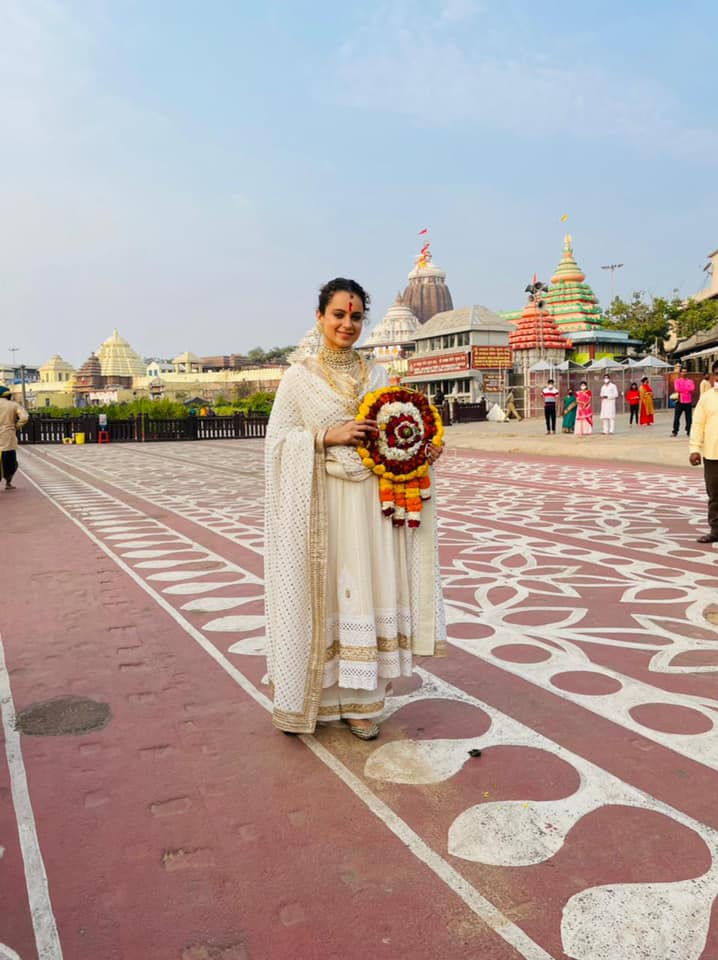 Famous Bollywood actress Kangana Ranaut visited Lord Jagannath temple at the Pilgrim Town on Friday morning and offered prayers to the Holy Trinity.On the professional front, Kangana has been shooting for action film Dhaakad in Madhya Pradesh alongside Arjun Rampal and Divya Dutta. Kangana Ranaut headed to the Puri Jagannath temple in Odisha, and looked stunning as always in a gorgeous white and gold palazzo kurta set with Chikankari and silver kamdani work on it. Kangana plays Agent Agni in the film produced by Sohail Maklai and directed by Raznees Ghai, it is set to release in October of this year. Her other upcoming projects are Thalaivi and Tejas.